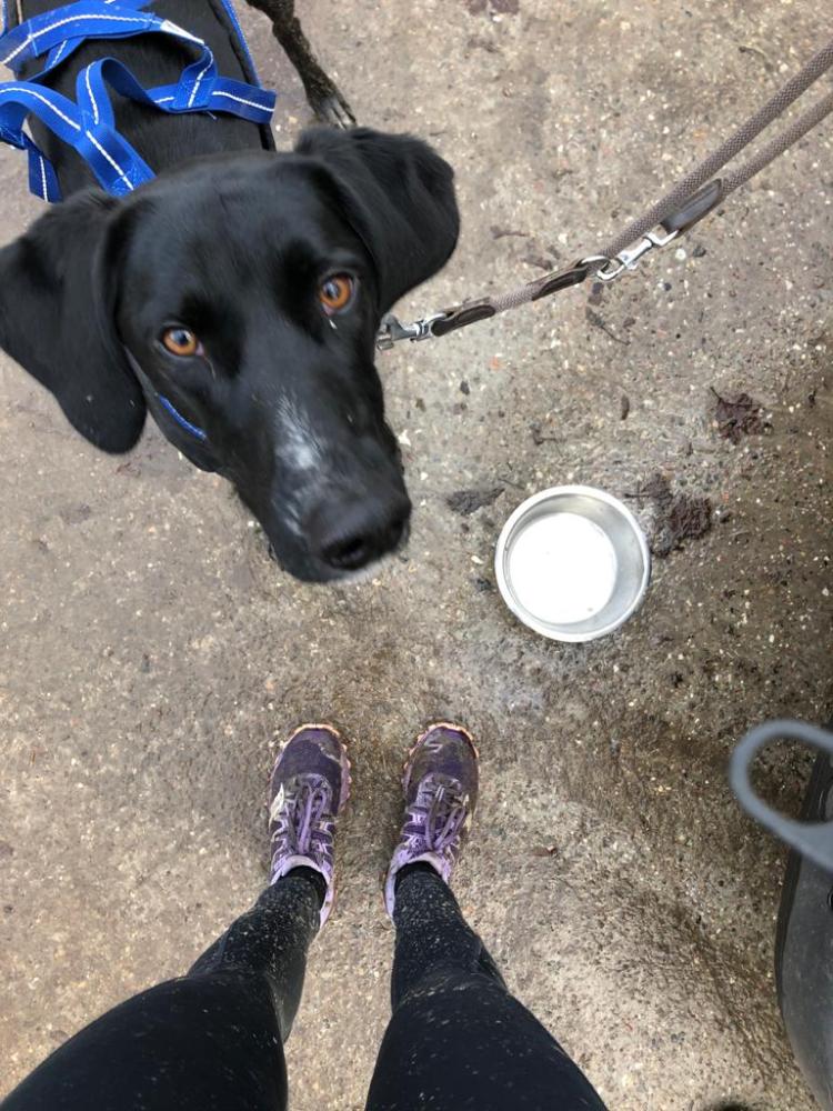 Die Shakes finde ich gut, weil ich die Hunde vorm Training oder Rennen sowieso wässere. Das bedeutet, dass sie 1,5-2std vor dem Lauf ca. 500ml Flüssigkeit bekommen, damit sie auf dem Trail gut versorgt sind und nicht das Bedürfnis haben, aus der nächsten Pfütze zu trinken. Vor dem Lauf gehe ich dann mit Buddy und Diego nochmal eine Runde, damit sie sich lösen können und nicht auf dem Trail plötzlich anhalten möchten um das zu erledigen.