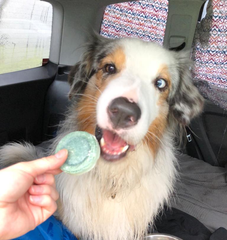 Ich gebe die Drinks gerne zum Wässern 1,5-2std vor dem Training/Wettkampf. In den meisten ist ein guter Geschmack (wie z.B. Fisch) inklusive und so bekomme ich Buddy leichter dazu, etwas zu trinken vor dem Training. Ich hatte schon diverse Diskussionen mit ihm, denn er trinkt nicht immer das, was ich ihm anbiete. Je nachdem wie anstrengend das Training war oder wenn wir zwei Belastungstage haben, bekommt er auch einen Energieriegel danach.