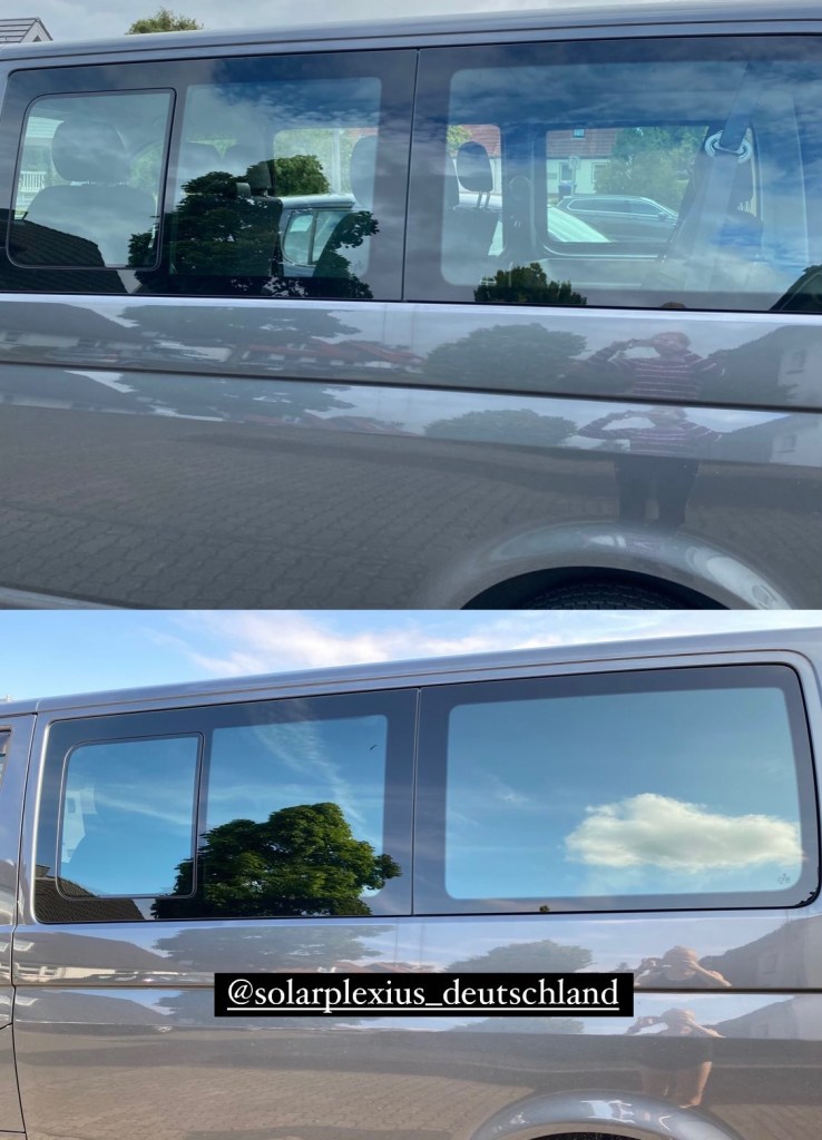 Der erste Schritt für meinen Busausbau 2021. Ich brauchte eine schnelle Möglichkeit, meine Scheiben zu tönen, denn kurz nachdem ich den Bus vom Autohaus abholte, wollte ich auch schon auf Tour damit. Ist halt nicht so cool, wenn jemand reingucken kann. Ich habe mich für getönte Plexiglasscheiben von Solarplexius entschieden. Schwarz von außen und nicht durch zu sehen, innen wird das Auto etwas dunkler, aber man kann gut hindurchsehen. Perfekt für die Draußenzeit, in der man gerne die Natur sehen möchte, statt Vorhänge vorzuziehen. Die Bestellung war schon mal super einfach. Man sucht sich sein Modell aus, bestellt die Scheiben, die man braucht (es sind ganz dünne, flexible Scheiben, die man in die Fenster von innen reinschiebt/reinklickt) und bekommt eine Bestellbestätigung und ein paar Fragen vom Kundenservice zugesandt. Da geht es um genauere Daten von den Fenstern, gerne soll man aber auch Fotos mit senden. Das habe ich dann fix beantwortet und etwas später habe ich dann auch schon die Versandbestätigung erhalten. Ein paar Werktage später war die Lieferung dann da.